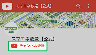 「スマエネ放送【公式】」のトップページにある「チャンネル登録」のアイコンをタップすれば登録完了です。